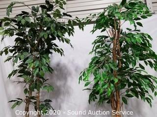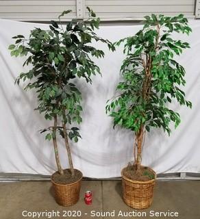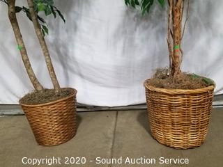 Lot #0026: 2 Faux Ficus Trees in Wicker Pots