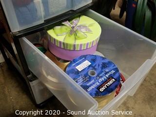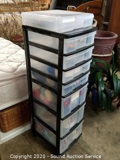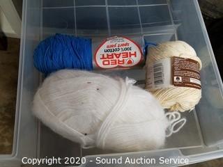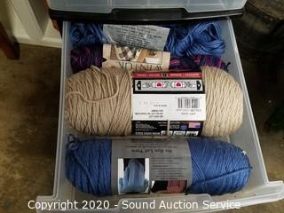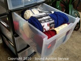 Lot Details: Includes yarn, knitting needles, scissors and more. Largest is rolling, 7 drawer, 43" x 12.5" x 16".