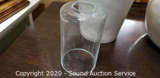 Lot Details: Anvil iron & distressed antique grey finish with seeded glass shades (one is cracked). $300 retail value. 32" W x 12"D x 16.5" H.