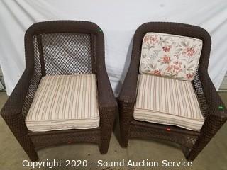 Lot #0013: Pair of Brown Woven Patio Chairs