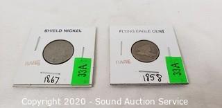 Lot #0033a: Rare 1858 Flying Eagle & 1867 Shield Nickel