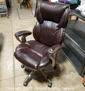 Lot #0069: Rolling Adjustable Brown Faux Leather Office Chair