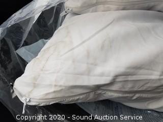 Lot Details: Removable covers, small dirty spot on one pillow, looks like it will wash out. Package has been opened, no issues.