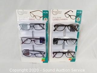 Lot #0350: 6 Design Optics +1.75 Reading Glasses