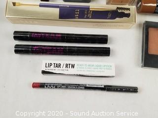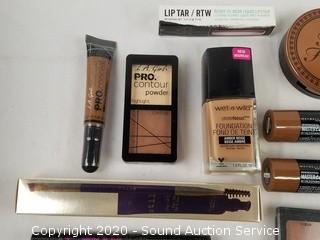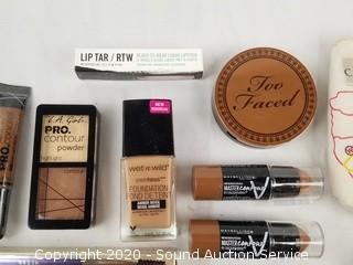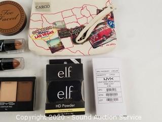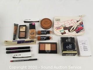 Lot Details: Brands include Elf, Wet & Wild, NYX, Stila, Lip Tar, LA Girl, Maybelline, Too Faced. Products include contour, HD powder, brow gel, lipstick, brow pencil, bronzer, foundation. Comes with a Route 66 makeup travel case.