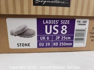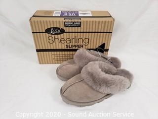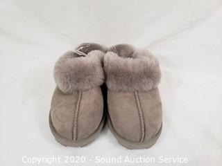 Lot #0257: New Ladies Stone Gray Shearling Slippers S:8