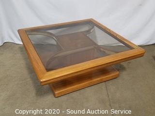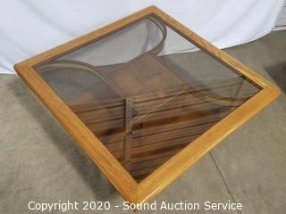 Lot #0005: Quarter Sawn Oak Glass Top Coffee Table