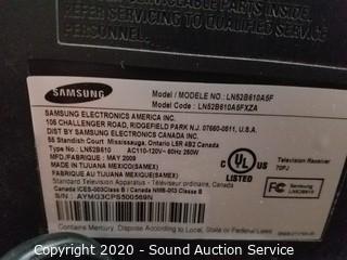 Lot Details: Model LN52B610A5F, mfg. May 2009. Works, has 2 small blemishes on the screen. On a swivel stand.