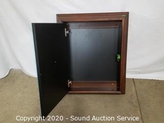 Lot Details: Surface mount, 22.5" x 4" x 27.5". Magnet that pops the door open is broken, otherwise in good condition.. Has been previously installed.