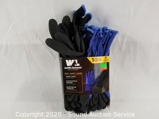 Lot #0189: 10pk Wells Lamont Foam Latex Work Gloves S:Medium