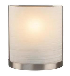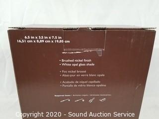 Lot Details: Brushed nickel finish with white opal glass shade. 6.5" x 3.5" x 7.5". Has been previously installed, works, missing instructions otherwise complete.