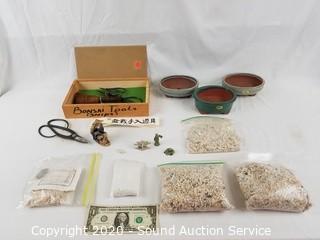 Lot #0168: Bonsai Tools, Pots & Stones