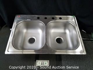 Lot #0013: Dayton Double Basin Chrome Finish Kitchen Sink