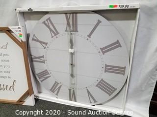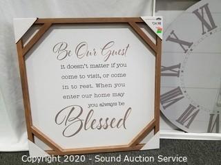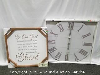 Lot #0197: Interior Decor Quartz Clock & Blessed Sign
