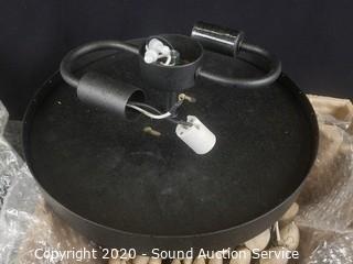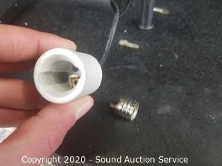 Lot Details: Anvil iron and driftwood finish. One socket works, other needs replaced, cannot fit a bulb in it.