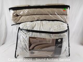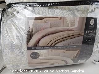 Lot #0195: King 6pc Reversible Comforter & Coverlet Set