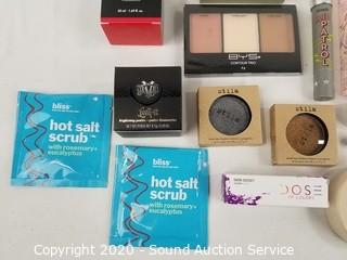 Lot Details: Brands include Milani, Cargo, Bliss, Laura Geller, Smash Box, DOC, Too Faced, Stila, Benefit, Urban Decay, BYS, Hard Candy, Kat Von D. Products include makeup remover, contour trio, setting powder, lip cream, lipstick, eyeshadow, lip liner, concealer, touch up powder, hot salt scrub.