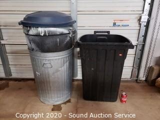Lot Details: 2 plastic, 1 galvanized. One has a lid.