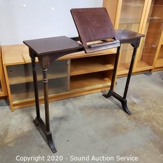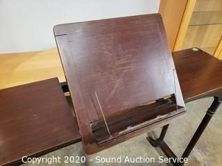 Lot Details: Top folds flat, center of top flips up to display a book, with arms to hold back pages. 30" H x 36" W x 9.5" D.