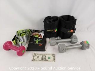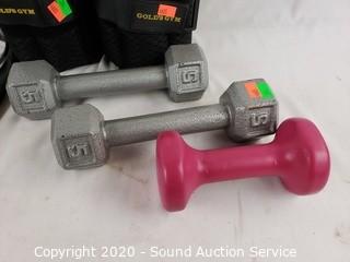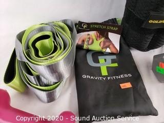 Lot Details: Includes Stretch Strap, (2) 5lb dumbbell and Gold's Gym ankle weights.