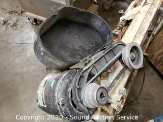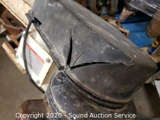Lot Details: Works. Does not come with blade. Plastic belt housing is damaged and loose. 35" H x 38" W x 11" D.
