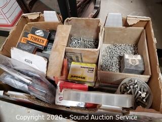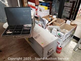 Lot #0319: Lg. Lot of Various Hardware & Wood Chest