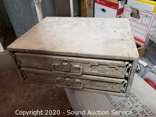Lot Details: Includes O-rings, nuts, bolts, bearings, wing nuts, wire connectors, water pipe freeze protection and more. Chest is 10" x 29" x 9.5".