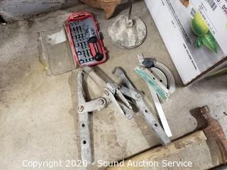 Lot Details: Grizzly Woodworking Squares, Various Bits, Puller, Threader, Cross-Cut Saw, Specialty Tools & More.