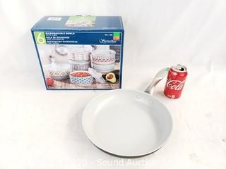 Lot #0328: New 10" GreenPan Frying Pan & 6 Microwave Bowls