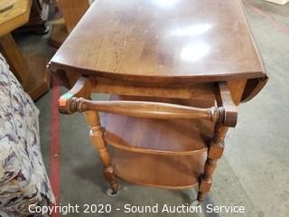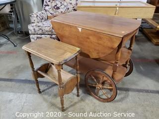Lot #0050: Vtg. Drop Leaf Tea Cart & Side Table