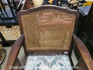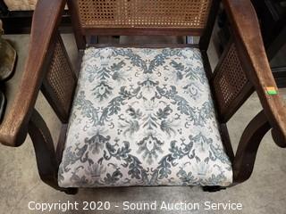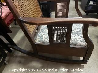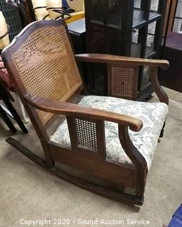Lot #0030: Vtg. Oak Cane Back Padded Rocker