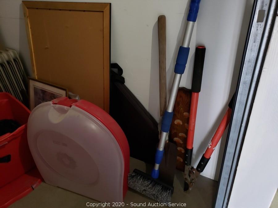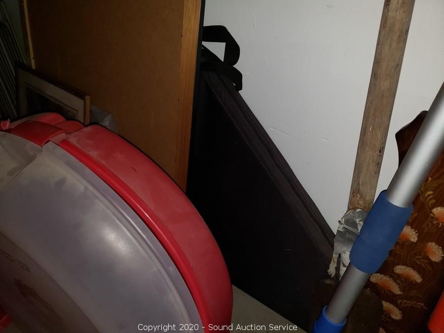 Must register at soundauctionservice.com to bid. $100 Refundable Cleaning Deposit. All Payments Made online at Soundauctionservice.com. 10% Buyer's Premium. Includes 6 units with; Washers, Dryers, TV's, DVD's, Furniture, Clothing, Studio Speakers, BBQ Grill, Military Apparel & Items, Camping Equipment, Fans, Coolers, Totes, & Misc. Household Merchandise.