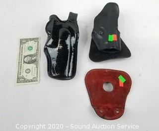 Includes Safariland S&W 6906 holster, Glock 26/27 red holster (has some minor wear) and Tex Shoemaker & Sons #75K holster.
