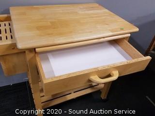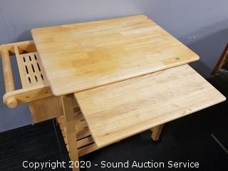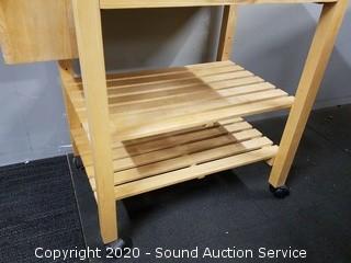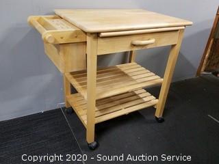 Single drawer, pullout cutting board, knife block, towel holder. 33" H x 36" x 22".
