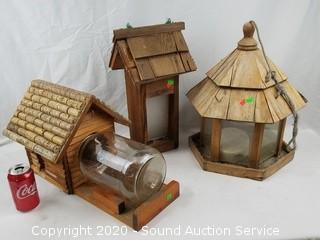 Lot #0122: 3 Wooden Bird/ Squirrel Feeders