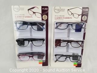 Lot #0360: 6 Design Optics +1.5 Reading Glasses