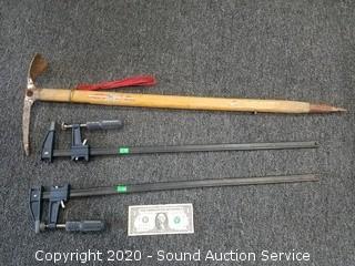 Lot #0076: Ice Axe & (2) 24" Bar Clamps