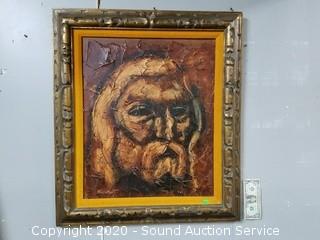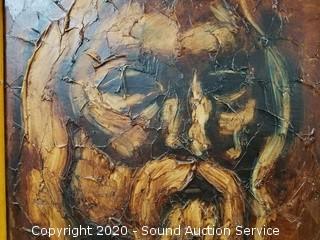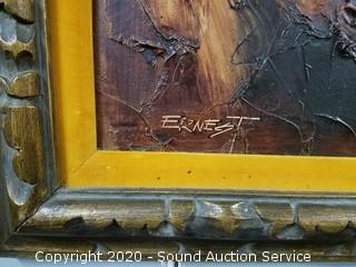 High relief, signed "Earnest" with carved wooden frame. 28" x 31".