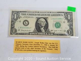 Lot #0112: Scarce Barr Note, Old Silver Cert. & $2 Note