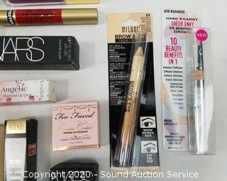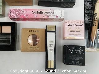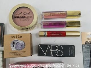 Brands include Nars, Milani, Stila, Maybelline, Too-Faced, Hard Candy, LA Girl, LA Splash, BYS, Morphe and Cargo. Products include lip cream, concealer, brow and eye highlighter, eyeliner, lip gloss, eye shadow, blush palette, highlighter and lip tint.