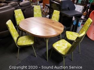 Lot #0024: Vtg. 1970's Green/Yellow Table & 6 Chairs
