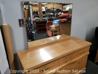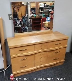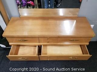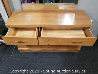 Lot #0020: Vtg. 6-Drawer Blonde Heather Vanity Dresser
