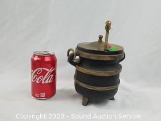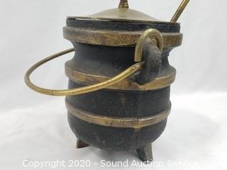 Lot #0099: Vtg. Cast Iron & Brass Fire Starter Pot