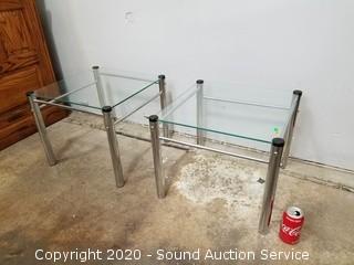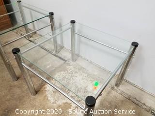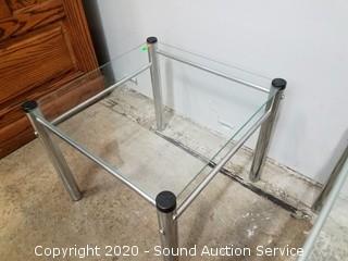 Lot #0156: 2 Contemporary Glass Top Chrome Finish Tables