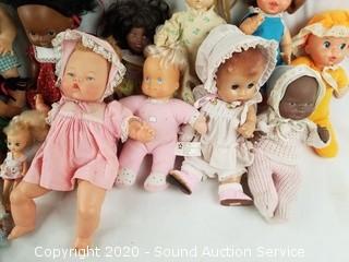 Lot Details: Includes 70s and 80s Mattel, Effanbee "Candy Kid", 1975 Vogue. Comes with some vintage clothing and doll furniture.