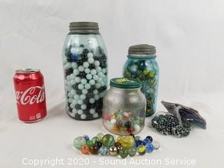 Lot #0197: 3 Canning Jars Full of Vtg. Marbles