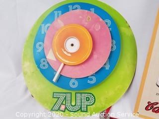 Lot #0219: 3 Vtg. Advertising Signs & 7UP Clock