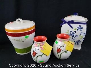 Lot #0139: 6 Starbucks Canisters & Vases