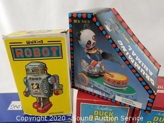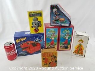 Lot #0127: 6 Vtg. Tin Toys w/Original Boxes & Book