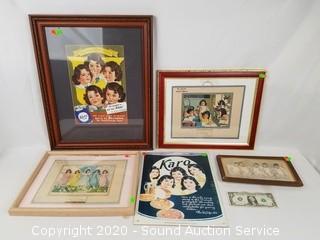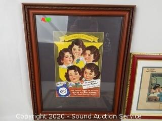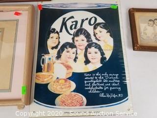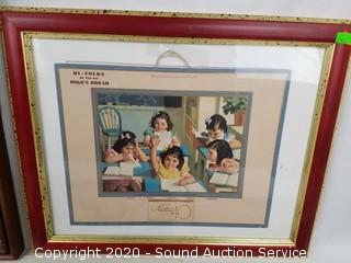 Lot Details: Includes a 1935 child print, Seasons Greetings girls print, tin Karo advertising sign, N.T. Swezey's Sun & Co. Flour, 1940 Boge's Bread and Karo framed sign. 6" x 11" to 16.5" x 20".